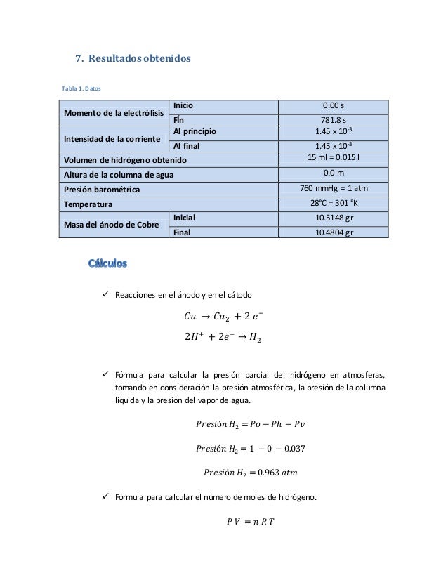 Determinacion De La Constante De Faraday Electrolisis