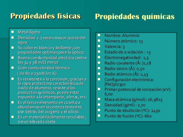 Documentacion De La Cadena Del Aluminio Y Su Reciclaje Propiedades Fisicas