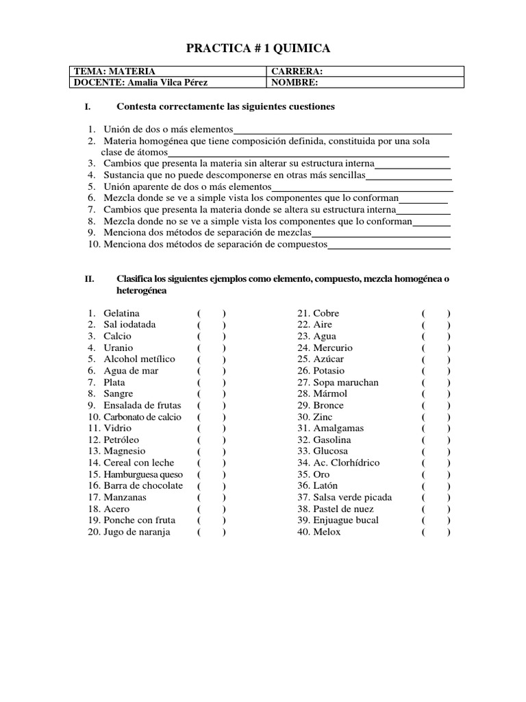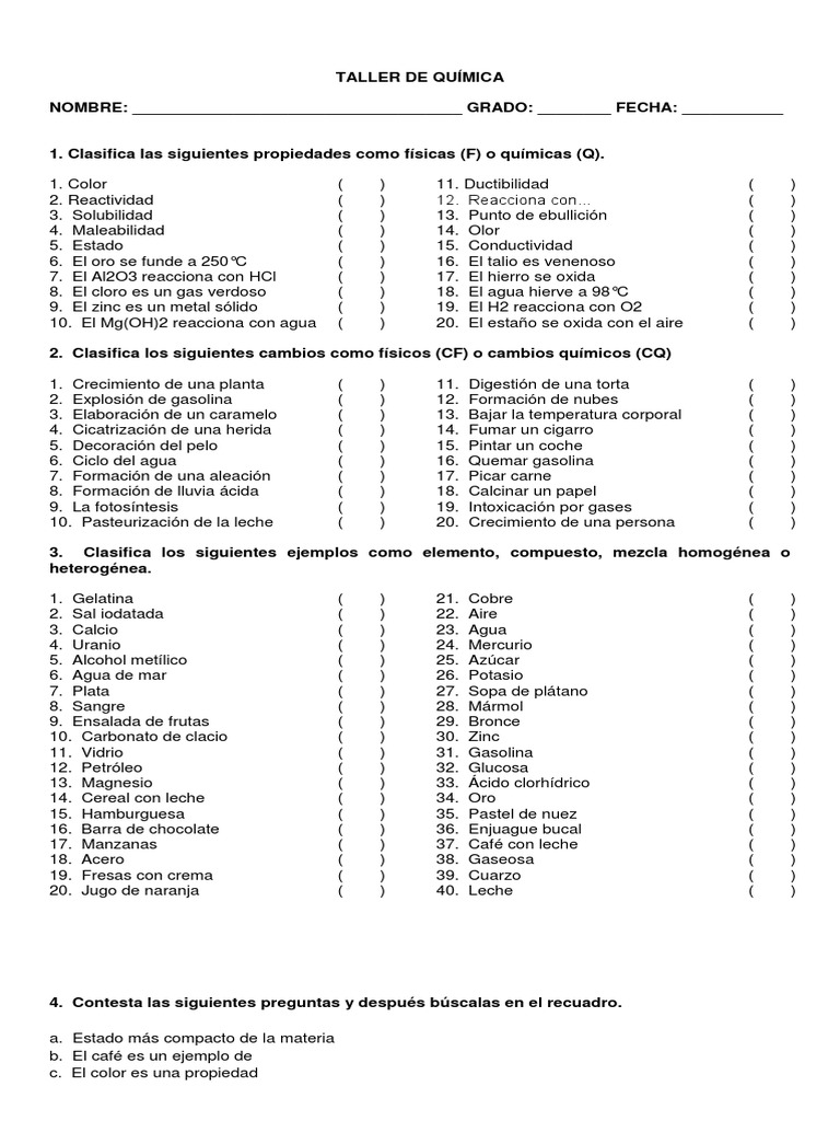 Taller 1 Quimica Pdf Taller 1 Quimica 1 Clasifica Las Siguientes Sustancias Como Elementos E Compuestos C Y Mezclas Homogneas Mho O Heterogneas Mhe 1 Course Hero