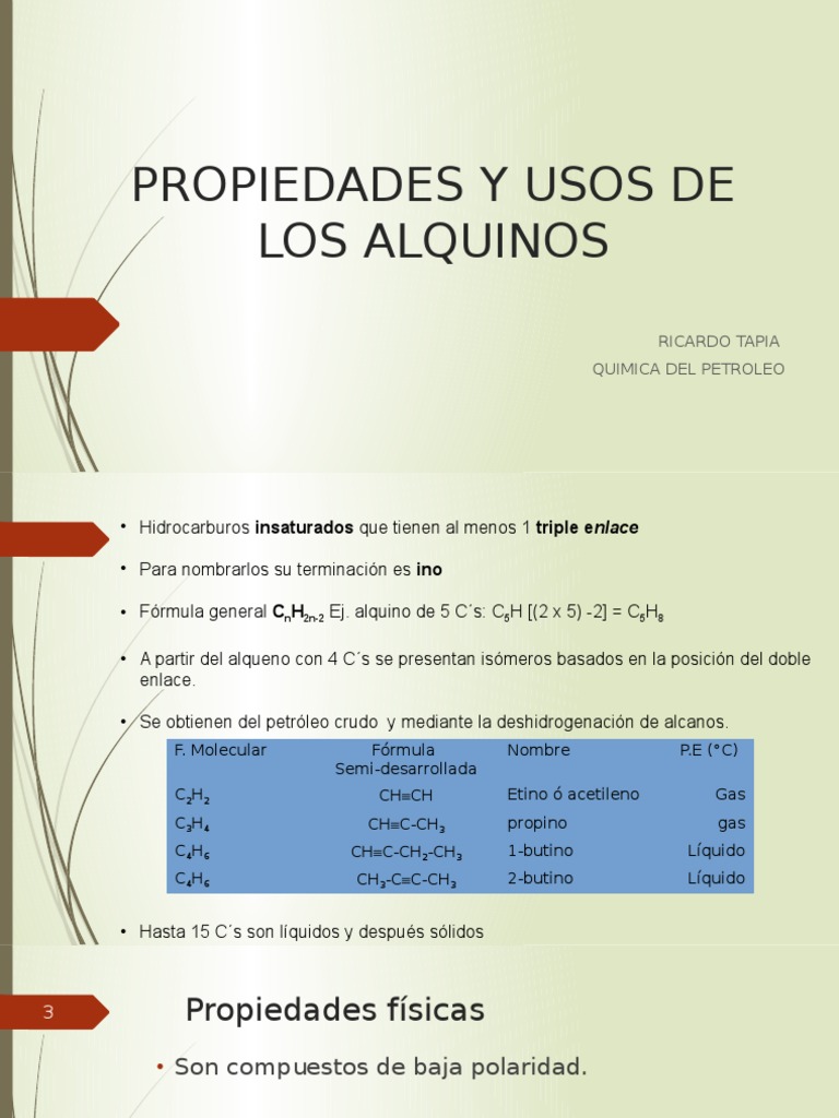 Propiedades Fisicas De Los Alquinos By Pamela Ruiz
