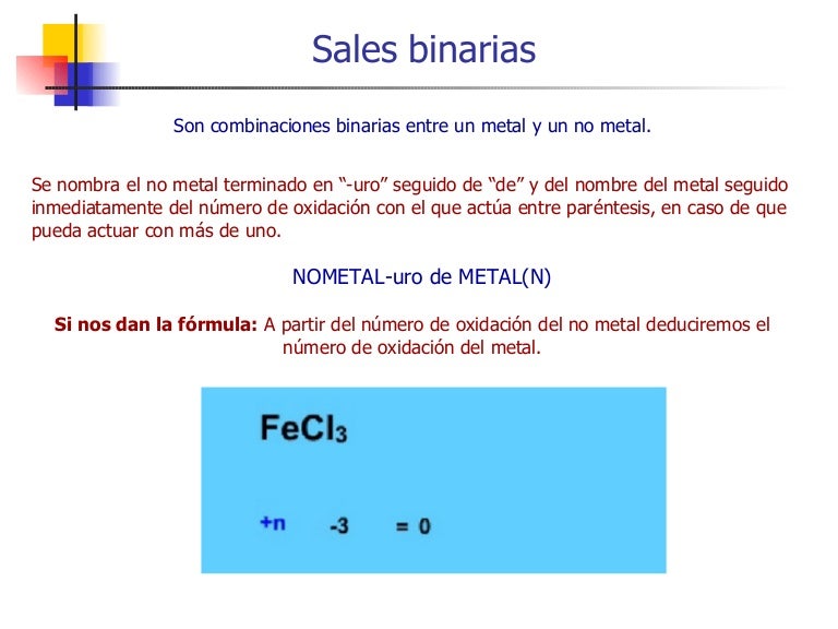 Se Conocen Como Sales Binarias A Las Combinaciones De Un Metal Con Un No Metal O De Dos No Metales Entre Si En Los Compuestos De Un Metal Y Un No