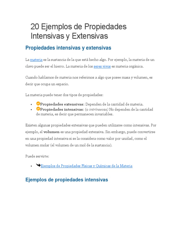 Breve Informe Con Datos Sobre Propiedad Extensiva De La Materia La Fisica Y Quimica