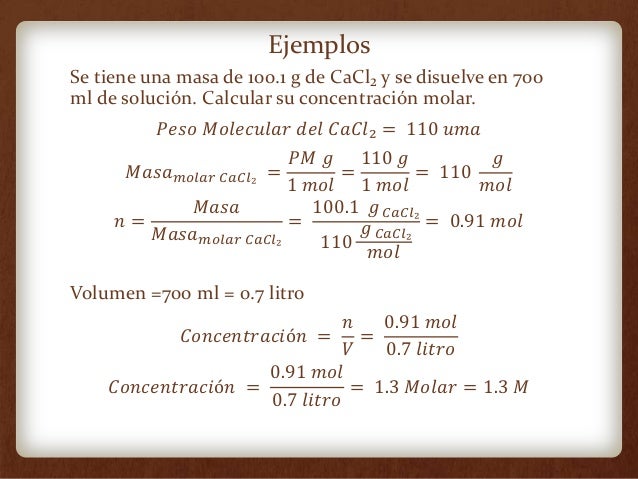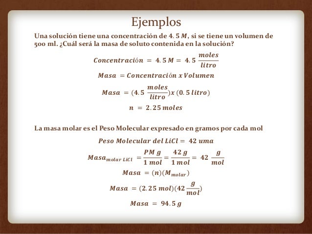 Molaridad Concentracion Unidades Calculo Ejercicios