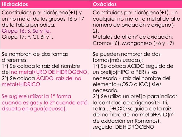Diferencias Entre Hidracidos Y Oxacidos