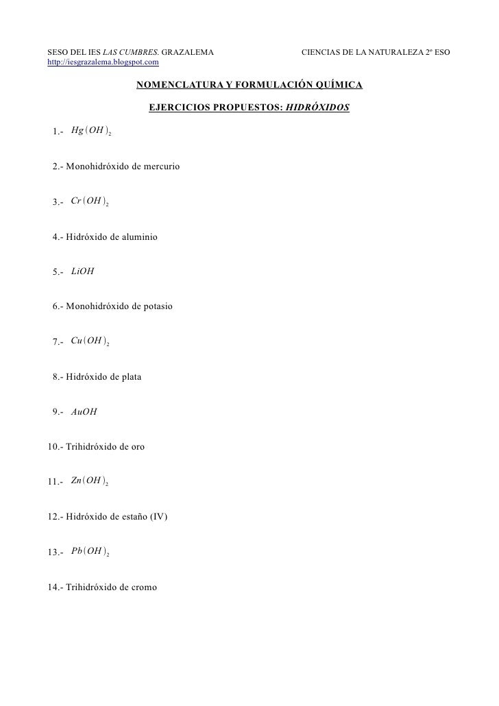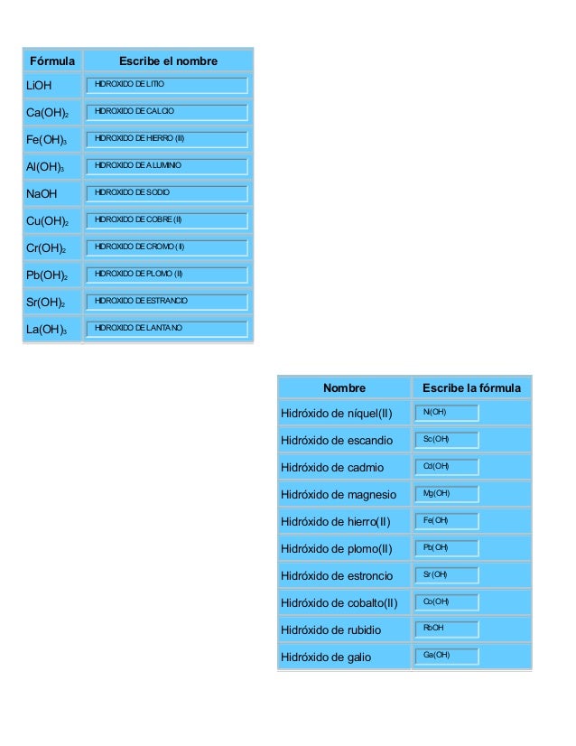 Ejercicios Resolver De Formulas De Hidroxidos 5