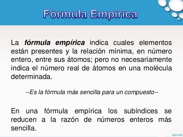La fórmula química empírica representa el número relativo de átomos de cada elemento en el. Fórmula química definición de Fórmula química.
