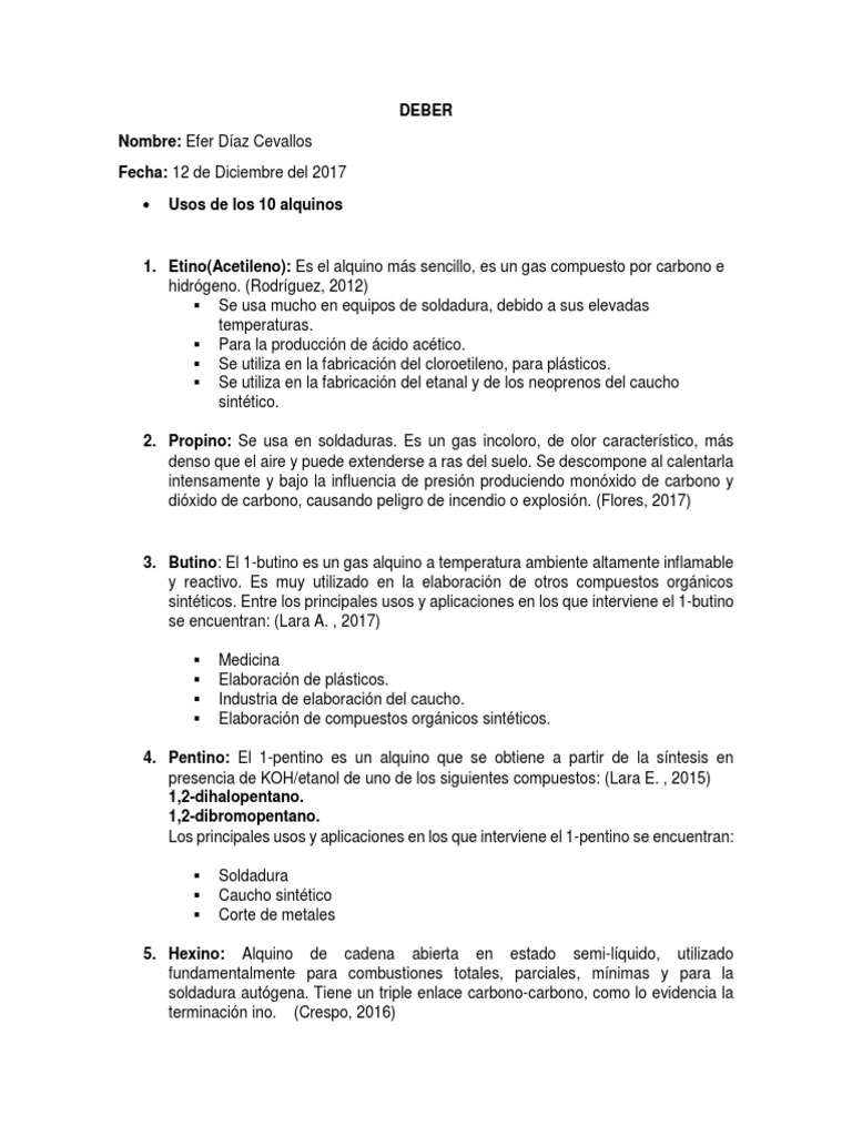 Usos De Alquinos Pdf Compuestos De Carbono Quimica Organica