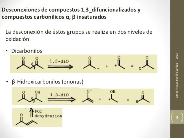 Compuestos 1 3 dicarbonilicos. Los compuestos 13-dicarbonílicos se caracterizan por poseer el siguiente grupo. Esto es la estrategia a utilizarse permitirá buscar relaciones dioxigenadas en la molécula precursora equivalente sintético con cierto grado de libertad es decir puede postularse según la estructura de la MOb una gama de relaciones dicarbonílicas yó hidroxicarbonílicas en posiciones relativas 12 13 14 15 yo 16 o sus variantes como son los compuestos.